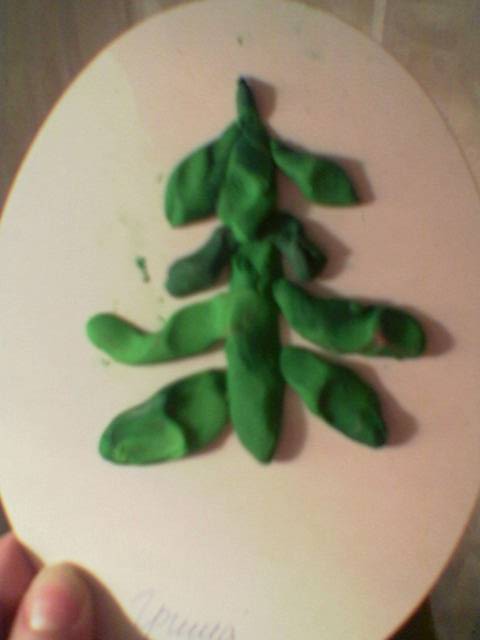 Это Гриня наряжал ёлку пластилиновыми рыбками (2 года 6 мес.)