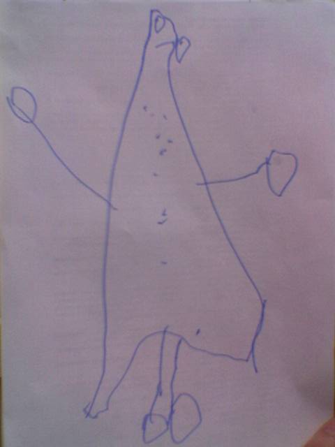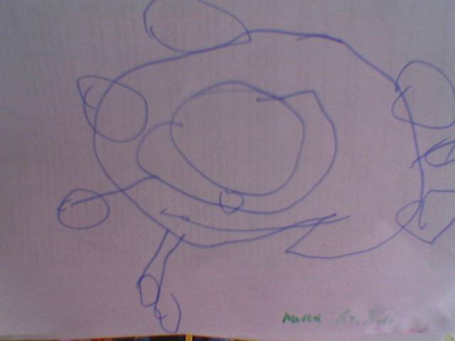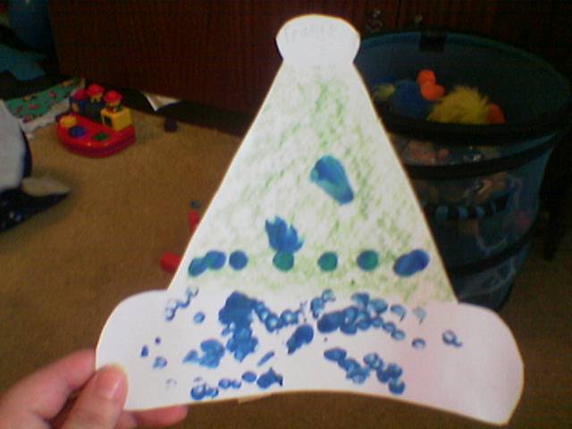 Шапка снегурочки. Рисовал пальчиками. (2 года 4 мес.)